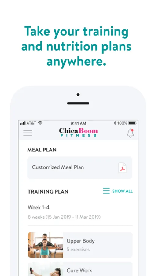 With the ChicaBoom Fitness App, you will be coached by a Certified Personal trainer right from your phone. Together, we can track your workouts, meals, progress an accomplish your fitness goals!
