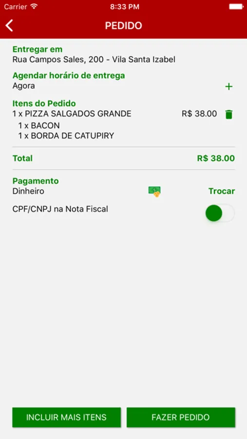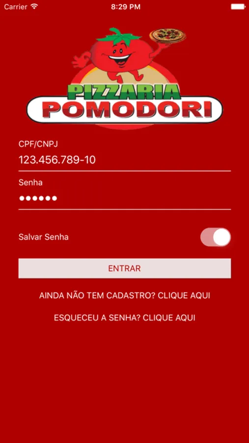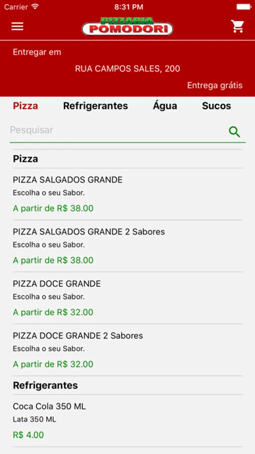 App de vendas da Pizzaria Pomodori
