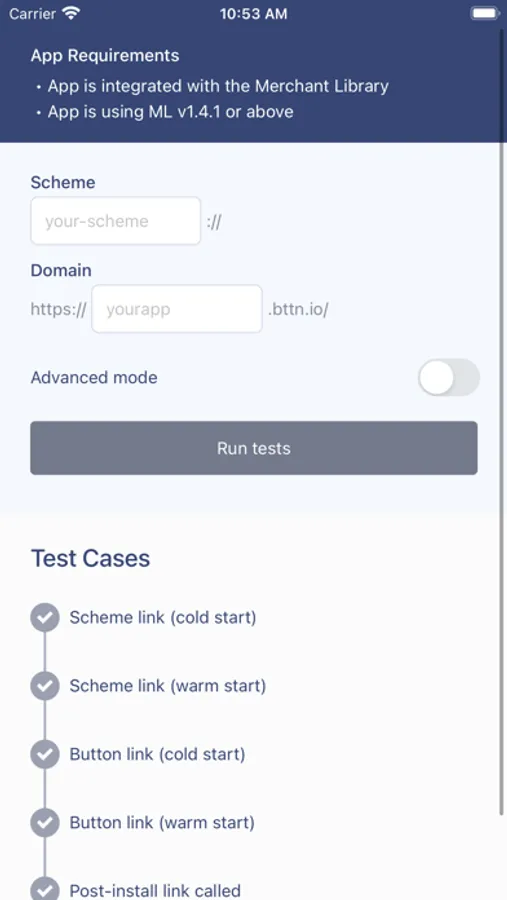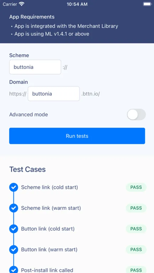 That's it... the app will do the rest, verifying that the Button Merchant Library is: