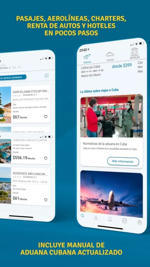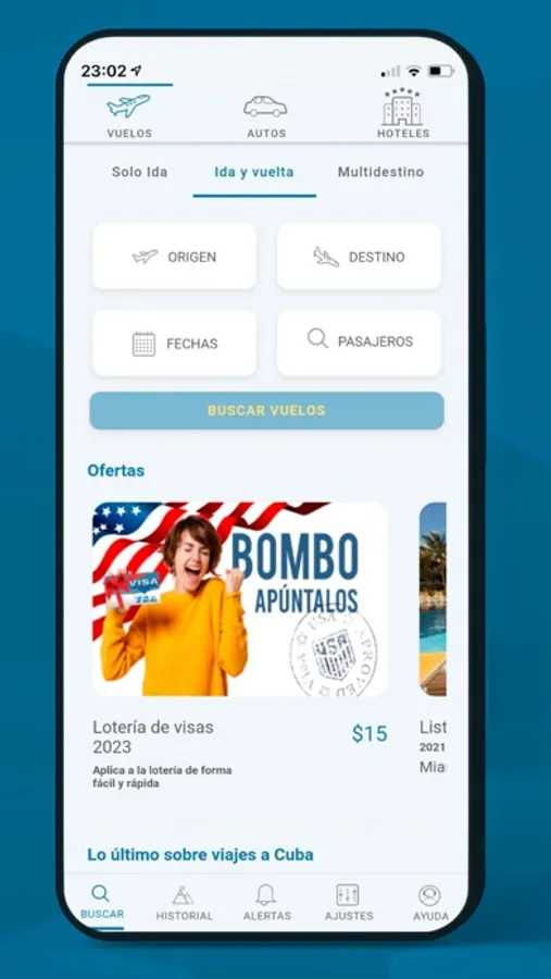 DimeCuba Travel's booking app is the best solution for your travel to Cuba and the rest of the world. Find the best deals on tickets and charters to Cuba, buy your flight, check your schedules and use all your details and payment methods with ease.