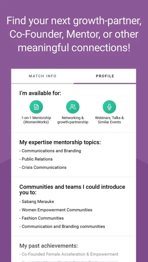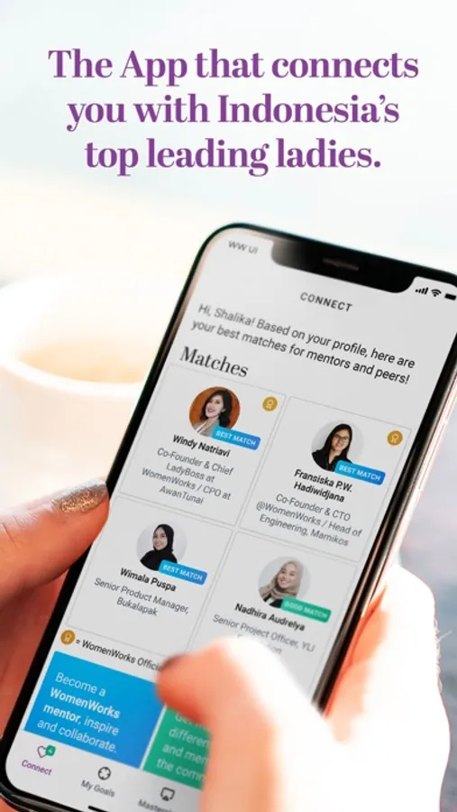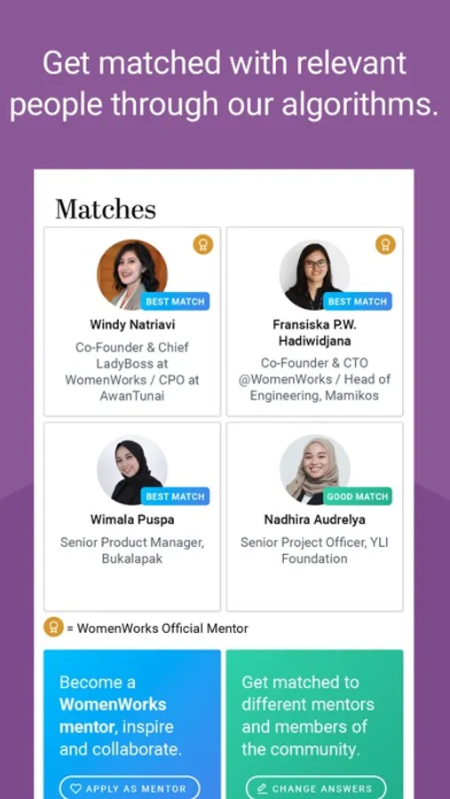 Let us know your career aspirations through the app, and we'll match you with other badass ladies through our sophisticated algorithm. These matches could potentially be your growth partners!