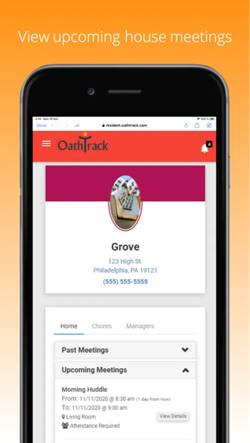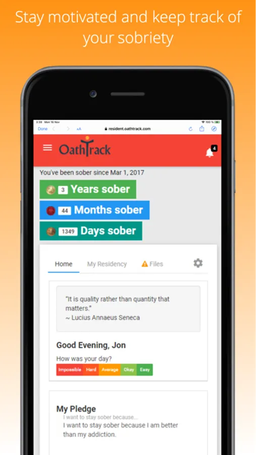 Oathtrack Resident mobile app helps you connect with your house residency, making it easy to keep track of your sobriety.