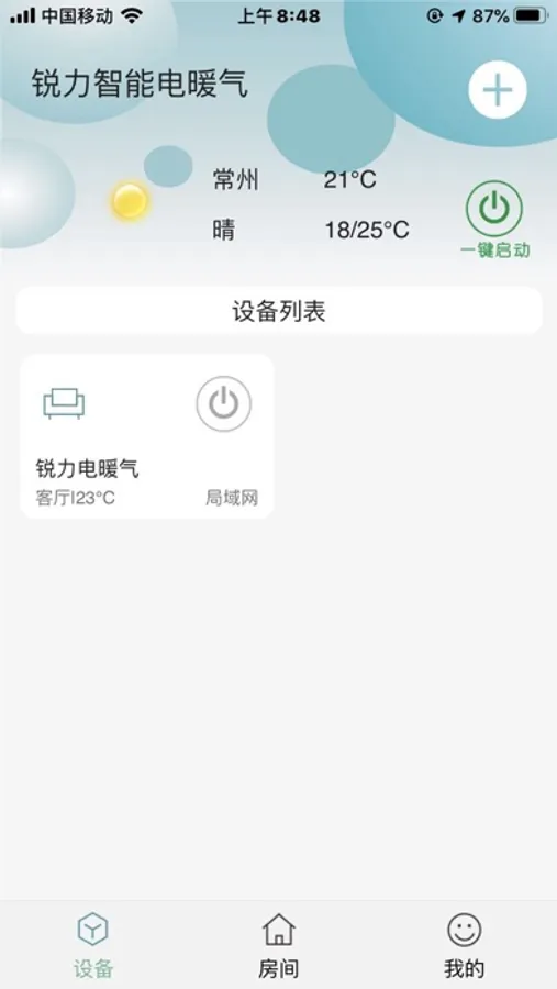 锐力智能电暖气APP 可以操控取暖器设备,显示当地的天气。