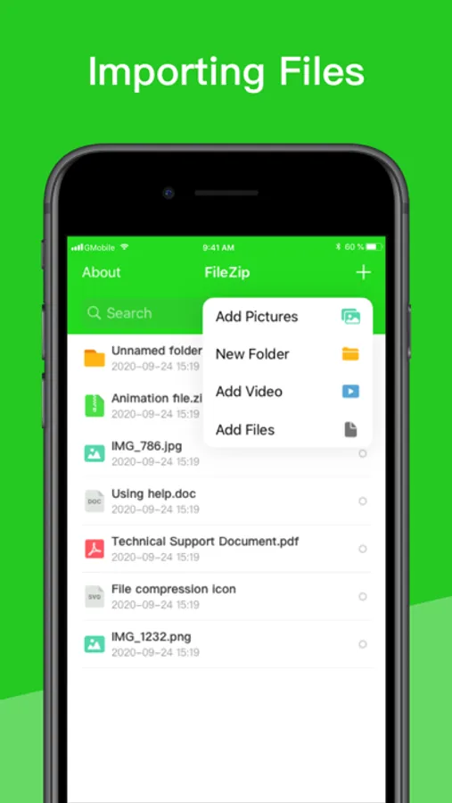 Zip/ unzip photos, songs, videos or files.