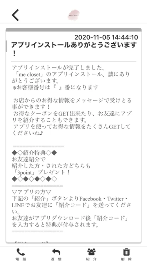 me closetのアプリをSNSを通じてお友達に紹介する事ができます。