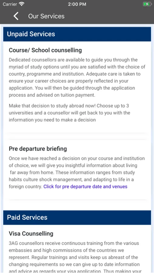 3AG Study Abroad Screenshots