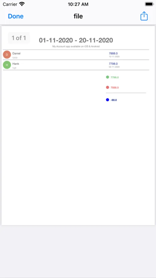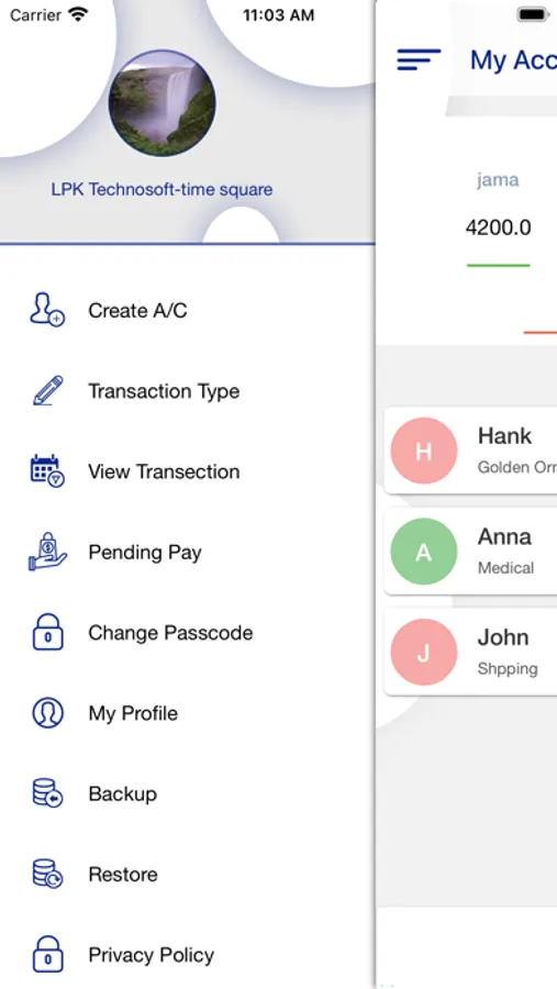 My eAccount makes easy to manage your personal as well as multiple account with full secured data. This app keep track of Credit & Debit Transaction with notes, Add Account from Contact list as well as manually, Payment Due list, Transaction filter by Date & Account Name, Backup Notification, Balance Sheet, generate PDF of transaction and share. Backup (Weekly & Monthly) of this app is totally secured with firebase using encrypt & decrypt data. App has password for security when app open, that password also need when Restore the data.