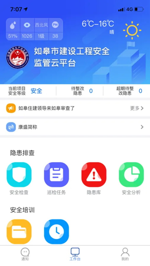 如皋建安是一款协助建筑安全监管人员将报建项目和非报建项目进行全面监督安全管理的一个平台.通过移动信息化、物联网、大数据等技术,将传统线下安全管理进行了智慧监管的升级,并通过数据分析隐患预警等,大大的提高了安全监管人员的工作效率。此平台更将村镇的非报建项目,实行了数据监管,将隐患排查和安全培训等情况,及时上报.
