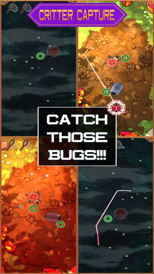 Use your net to capture the bugs by drawing circles around them with your finger. As you become more skilled at catching bugs, you will find new exciting critters with powerful abilities that they use to interrupt your capture attempts. You will have to build combos to catch the critters quicker by circling them many times before they bump into your net.