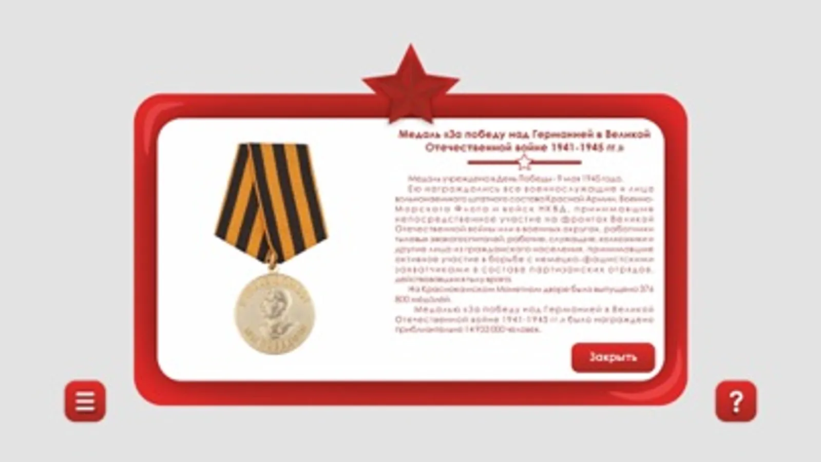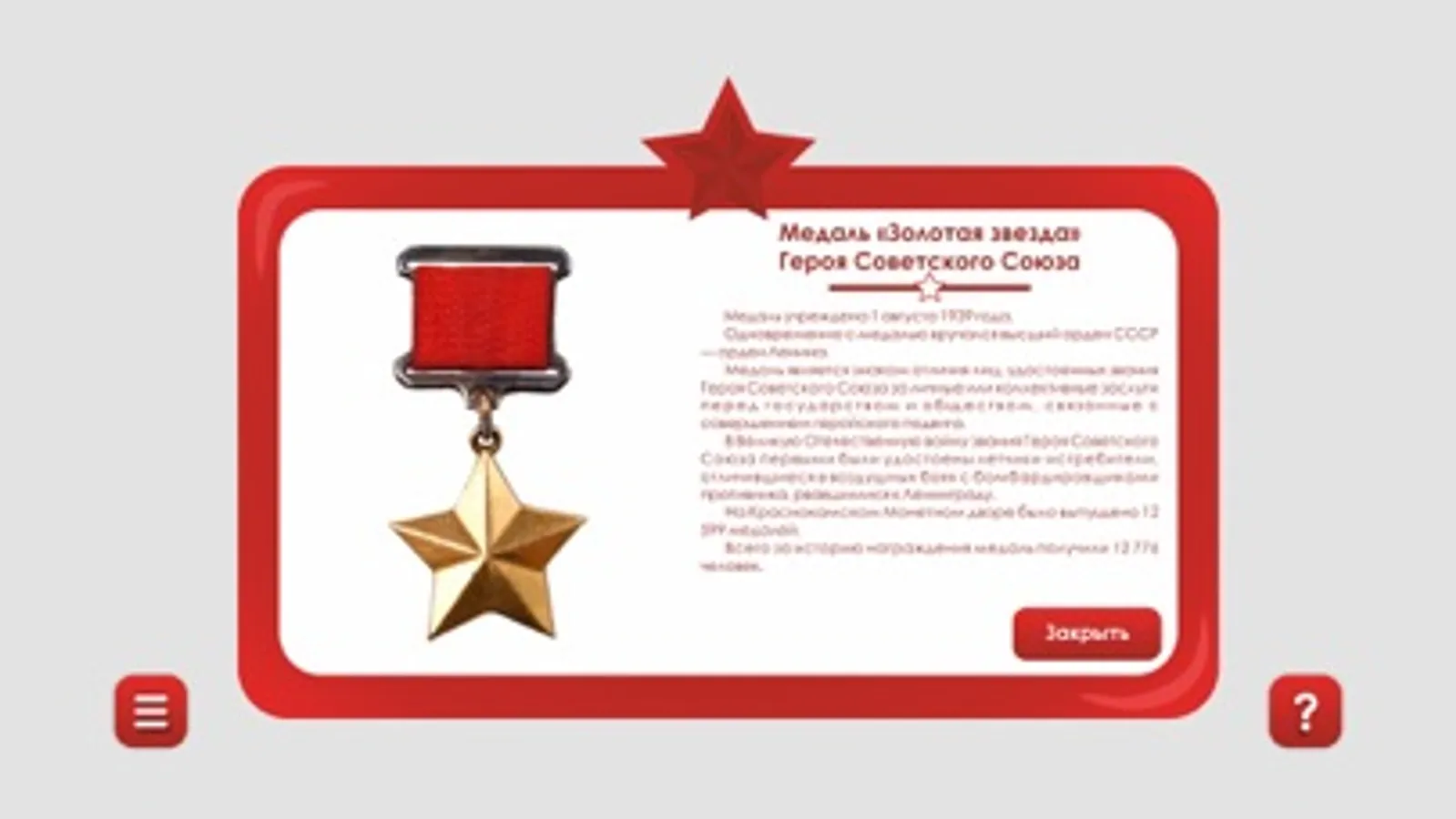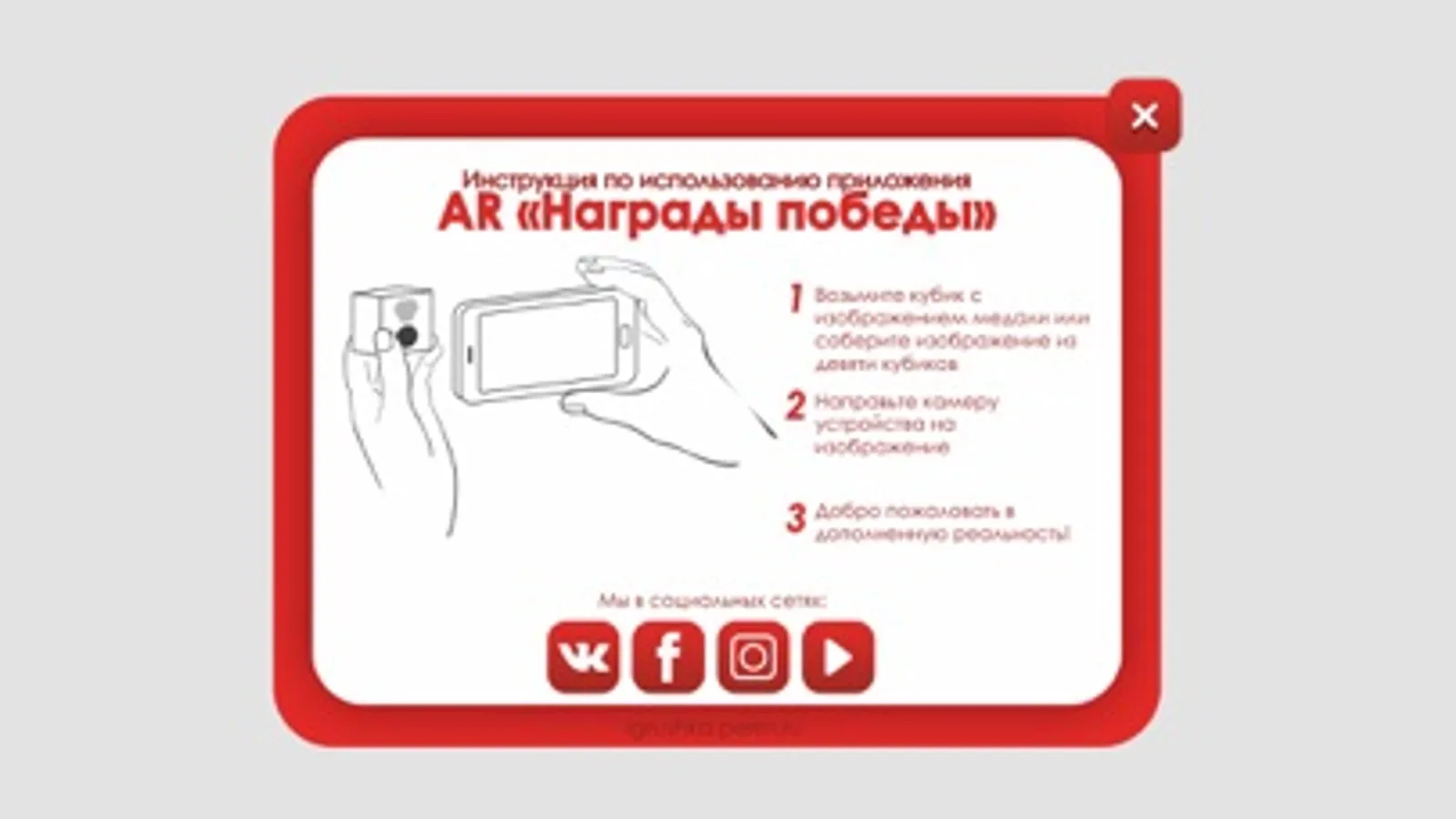 Приложение с применением AR-технологий. При наведении на кубики появляется 3D-проекция награды, при нажатии на которую выходит познавательная информация!