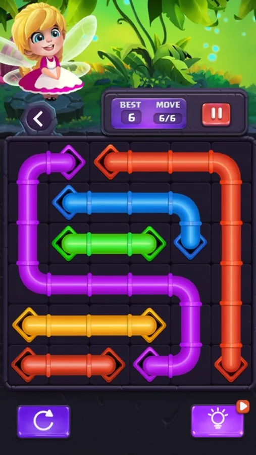 Connect matching colors with pipe to create a Line, Pair all colors, and cover the entire board to solve each puzzle. But watch out, pipes will break if they cross or overlap!