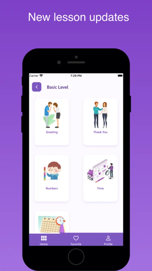 This level provides short stories accompanied by voice overlay and translations.