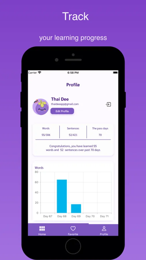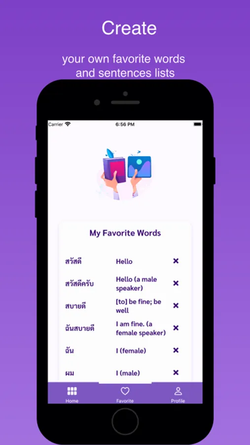- Favorite words and sentences saved lists