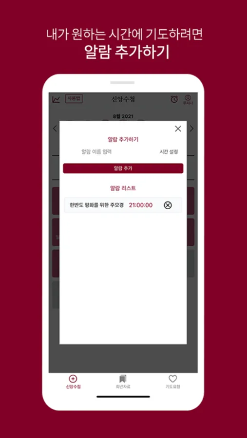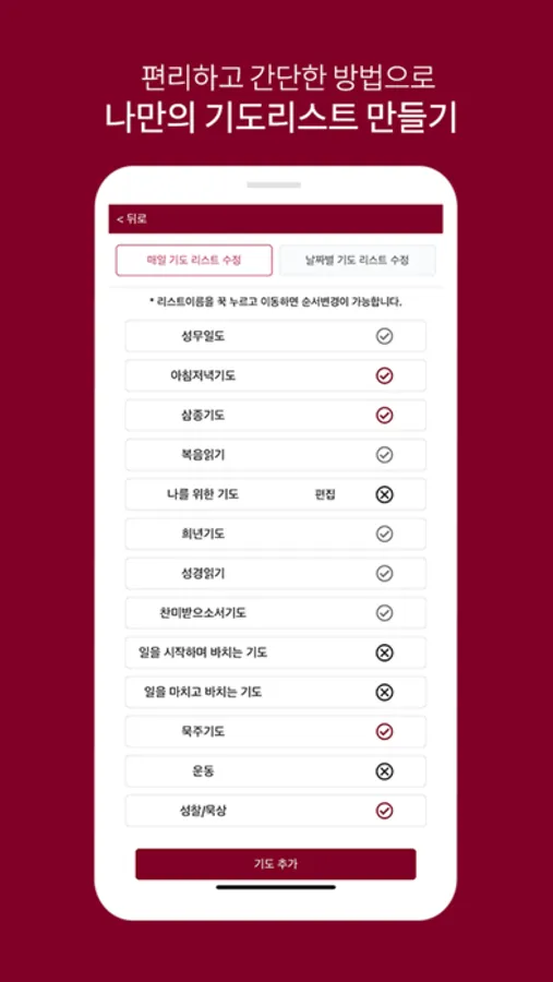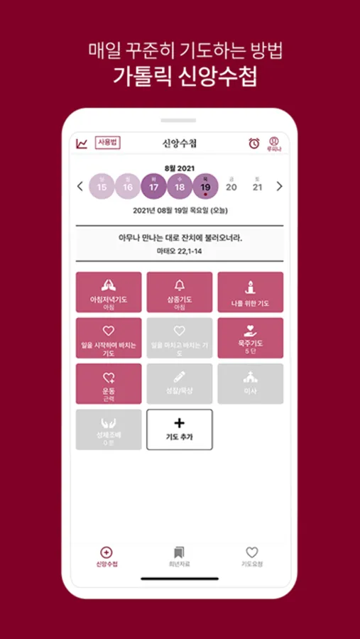 : 개인의 기도 생활을 체크할 수 있습니다.