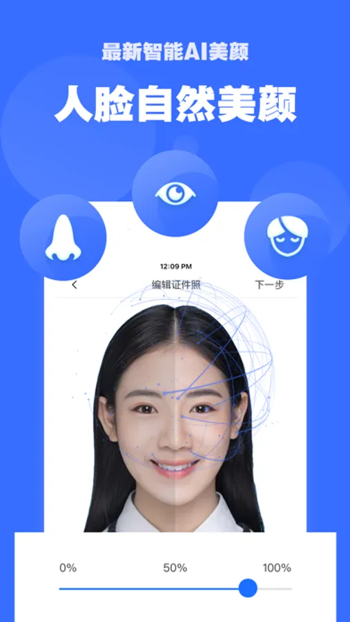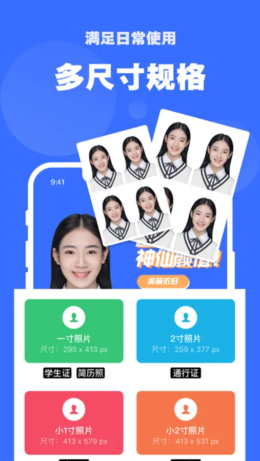 智能证件照:是一款支持智能抠图、背景切换、美颜美白、规格选择、电子证件照、纸质照片邮寄等多种功能的专业证件照的拍照app!