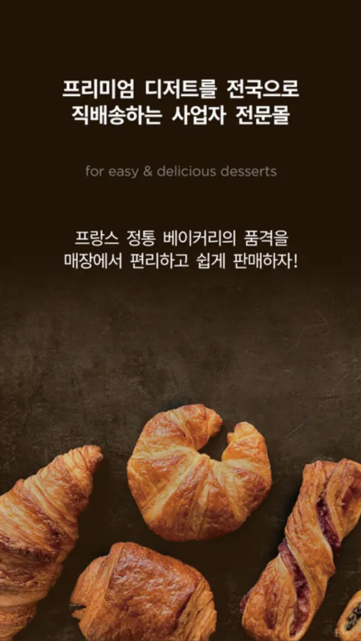 프리미엄 디저트를 직배송으로 편리하고 쉽게 만나볼수 있는 카페, 베이커리, 호텔을 운영하시는 사업자 고객만을 위한 사업자 전문몰