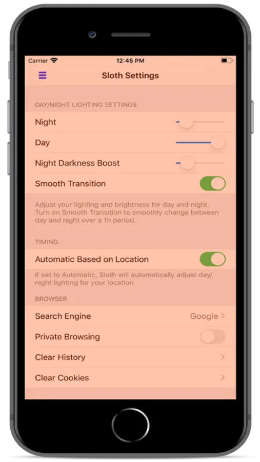 The Sloth Web Browser filters out the blue light to create a healthy, energizing sleep cycle. It is the first web browser that cares about your sleep quality! Sloth makes the color of your iDevice display adapt to the time of day, warm at night and like sunlight during the day. All automatically!