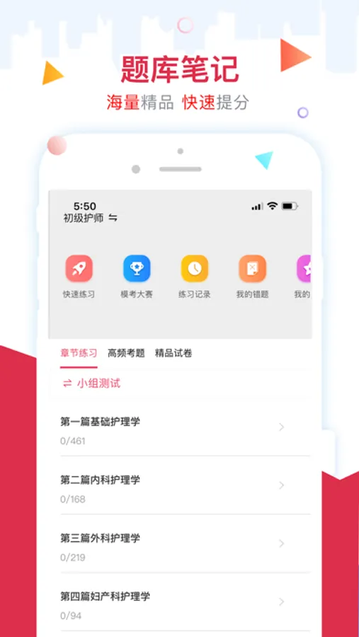 金护考app是为广大的护考生打造的在线学习应用,专注执业护士资格考试、职称类考试、招聘类老师、学历类考试、技能类考试的课程,提供完整的学习图书资料、配套学习课程、模拟考试、随堂测试、能力评估报告、课后答疑等考试学习的完整解决方案。