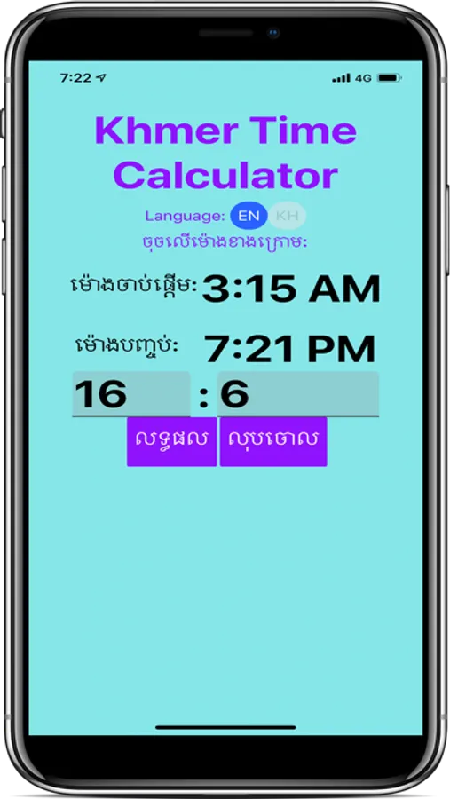 Khmer Time Calculator App, Calculate the time period.