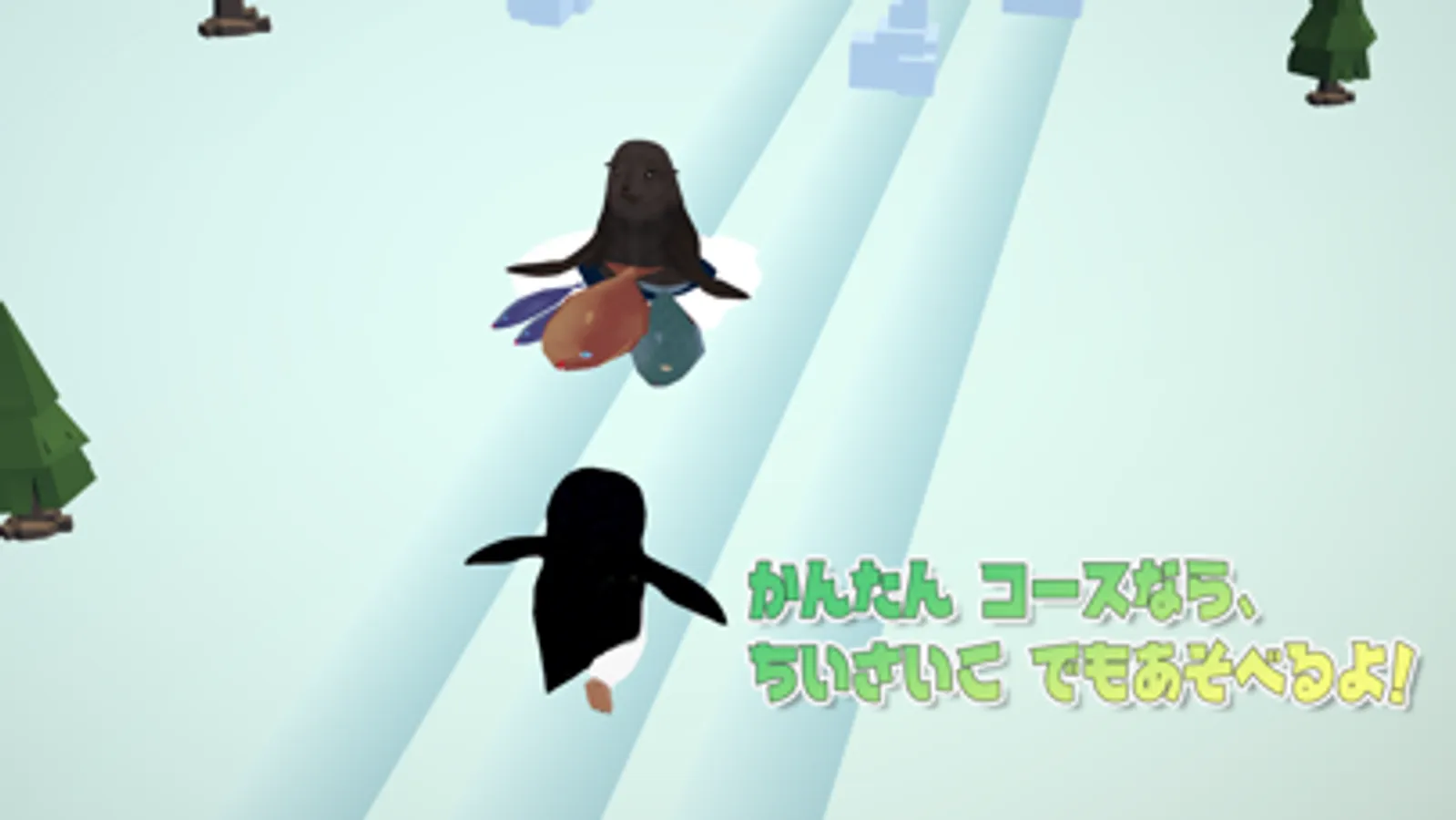 ぺんぎんパパを操作して南極大陸を駆けまわり、子供たちに美味しい魚を届けよう。集めた魚はステージクリア時にコインに交換されてハードモードとアバター開放に使用できます。