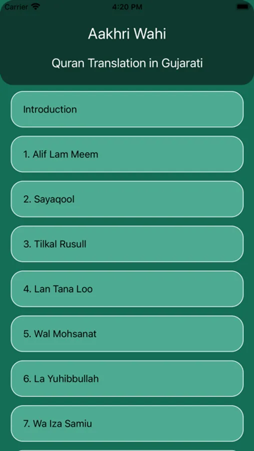 This is translation of Quran in Gujarati language. Which has translation of verse and chapters subject wise.