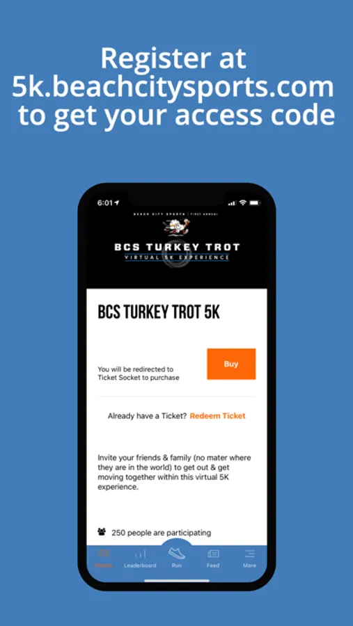 After you purchase a ticket to The BCS Virtual 5K, you will receive an access code to unlock all of the features in the app. We will ship the Participant Kits within 3-5 business days, so keep an eye on your mailbox!