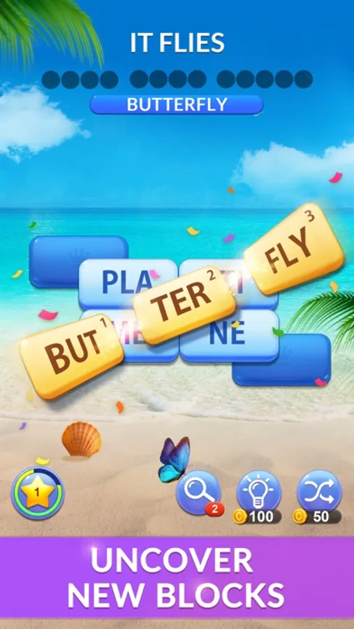 You can assemble words simply by tapping the scrambled blocks with 2 to 4 letters on them. It starts off easy but gets increasingly demanding as you level up. You may also use three additional tools to help you along the journey.