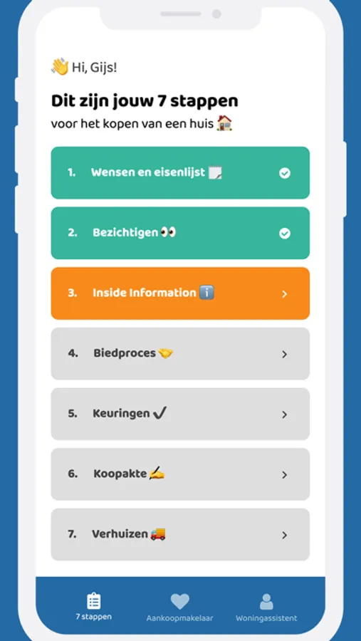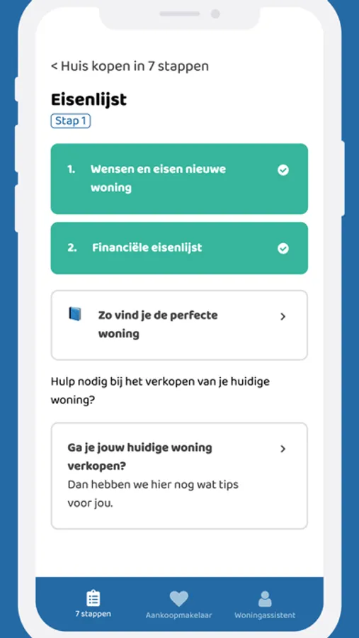 Met een overzichtelijk stappenplan doe jij een succesvolle woningaankoop. Je leert alles over de juiste volgorde tijdens het aankoopproces, krijgt tips bij elke stap en wordt begeleid tot jij een huis hebt gekocht.