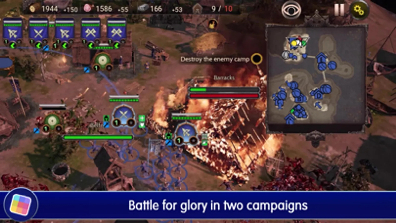 Those who seek a swift end will find it all too soon. Step into two campaigns, each with hours of strategic planning, crafty resource gathering, and intense fighting packed in. Take the terrain into account, use your more experienced units wisely, and try to keep up the morale of your warriors as the conflicts rage on. Oversee it all from high above, or use the cinematic camera to get an up close and personal view of the action. Choose from multiple difficulty levels to find a challenge worthy of your skills. Whether or not you win the day comes down to your leadership. For Odin!