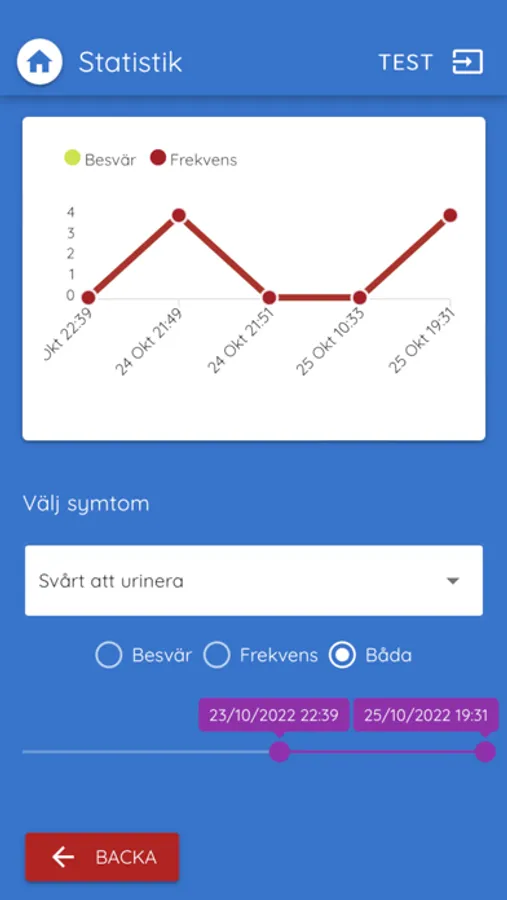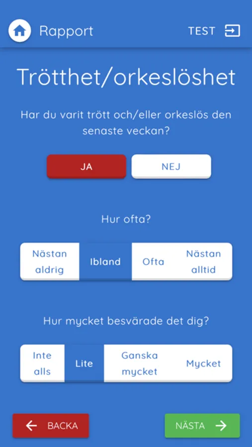 * Rapportering av förekomst, frekvens och grad av besvär av symptom.