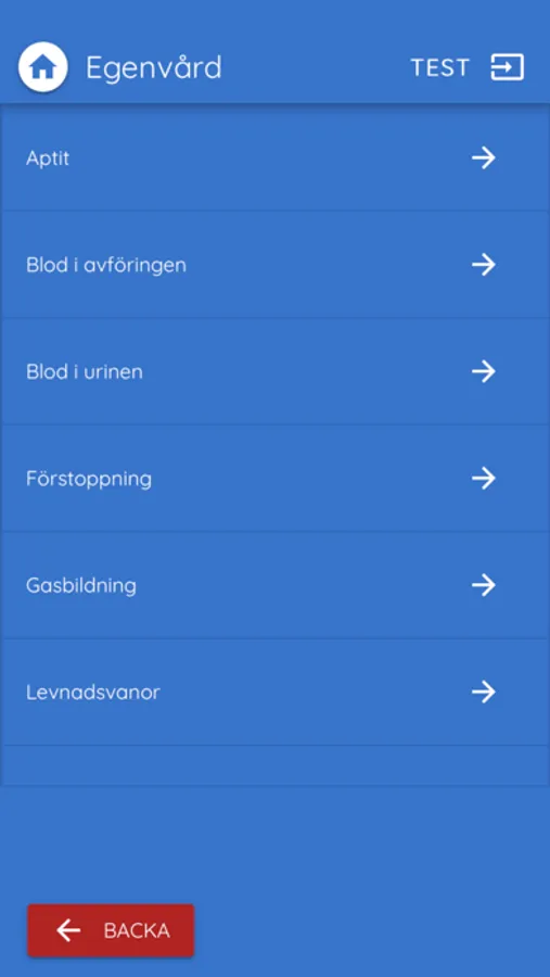 * Tillgång till egenvårdsråd kopplade till rapporterade symptom samt länkar till relevanta hemsidor för information.