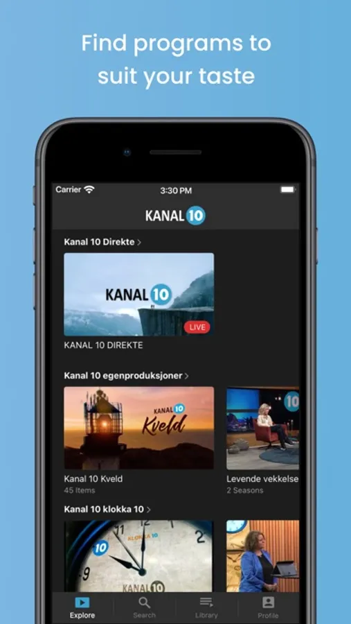 Here you will also find Kanal 10 Norge's live stream, which runs 24 hours a day.