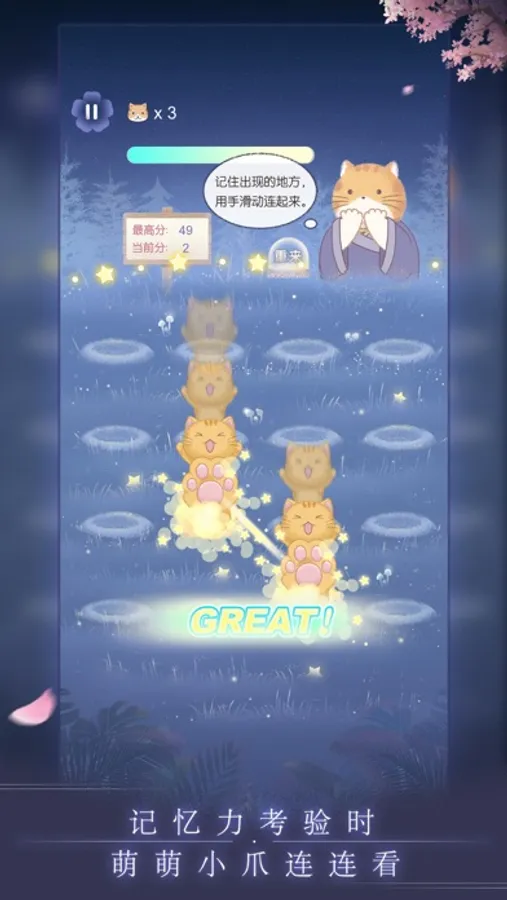 划船星空连连点,小橘猫Miza带您放松一刻。
