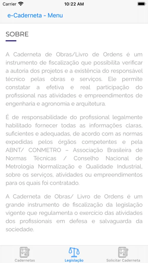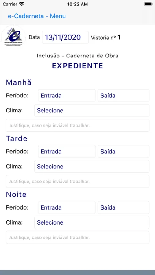 Aplicativo para preenchimento da Caderneta de Obras, anotações, histórico fotográfico, termo de abertura e encerramento.