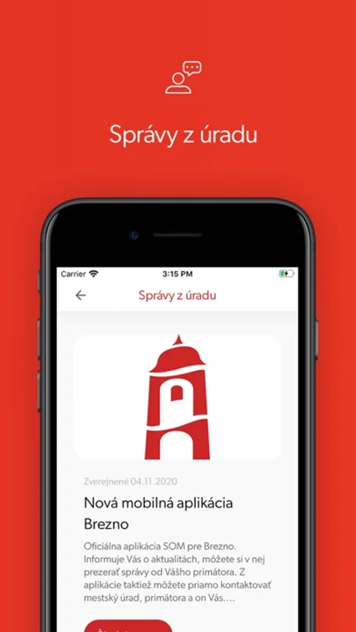 Mobilná aplikácia SOM. Informuje Vás o aktualitách, môžete si v nej prezerať správy z Vášho mesta. Z aplikácie taktiež môžete priamo kontaktovať úrad. Aplikácia je neoficiálnou aplikáciou mesta.