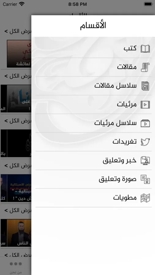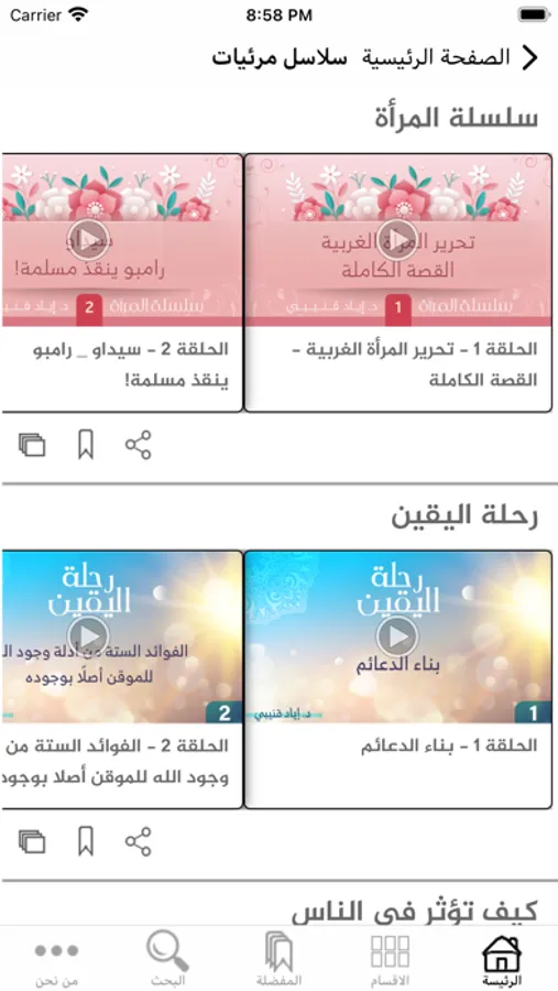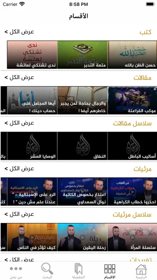 - كما يحتوي على أرشفة لكافة السلاسل المرئية كسلسلة رحلة اليقين والمرأة ونصرة الشريعة وسيكولجيا الانحراف.