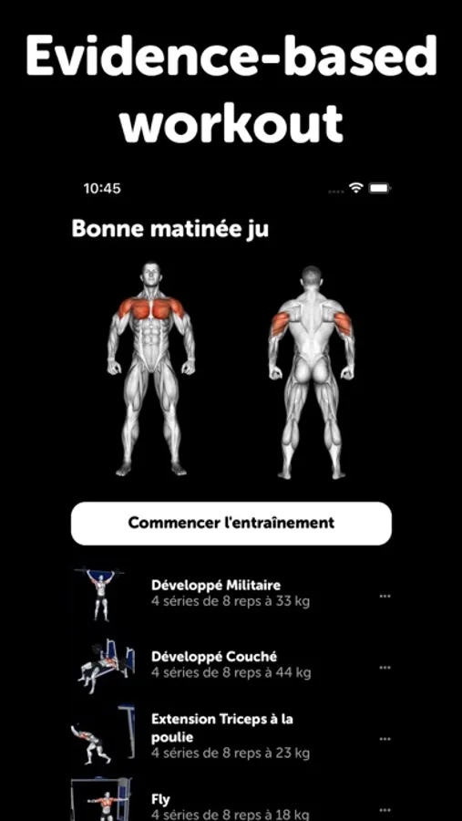 ● A personalized weight training program to make you leaner, stronger or bigger, faster than any personal trainer or physical trainer you'll find at the gym. Record your sessions for each weight training exercise and the Fitrest algorithm will make you progress without a doubt!