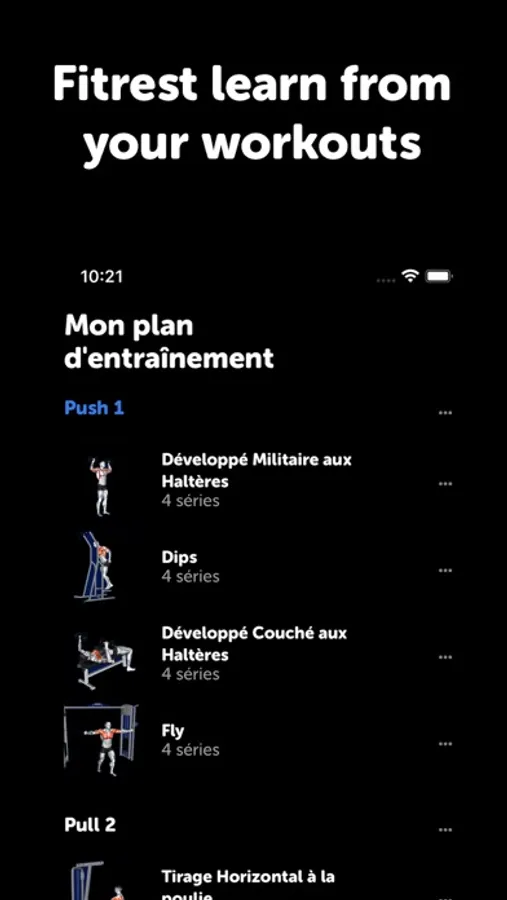 ● Fitrest optimizes progressive overload to offer you the sets, repetitions and loads best suited to each fitness workout to get stronger. No need to have a bodybuilding coach anymore.