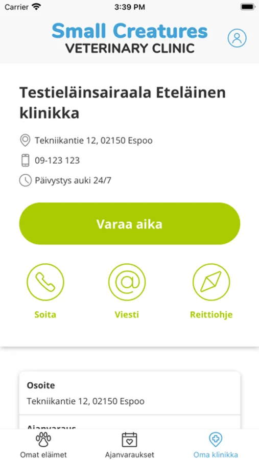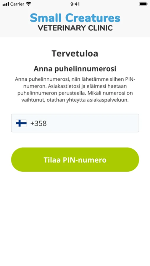 Mobiiliterveyskortti tarjoaa pieneläinklinikoiden asiakkaille mahdollisuuden katsella omien lemmikkien hoitotietoja sekä tehdä helposti ajanvarauksia klinikoille. Voit esimerkiksi tarkistaa helposti rokotusten ajantasaisuuden, jatkohoito-ohjeet sekä laboratoriotulokset. Sovelluksella voit myös tallentaa omia eläinten hoitomuistiinpanoja sekä tallentaa lemmikkisi kuvan eläimen terveyskorttiin. Kirjautuminen tapahtuu potilastietokantaamme ilmoittamallasi puhelinnumerolla, johon lähetetään tekstiviestinä salasana sovellukseen kirjautumiseen.