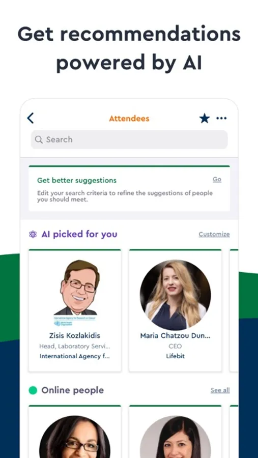 Based on your professional needs, our AI powered App suggests participants with common interests. Start reviewing your matches, initiate conversations and plan to meet virtually using a video call function.