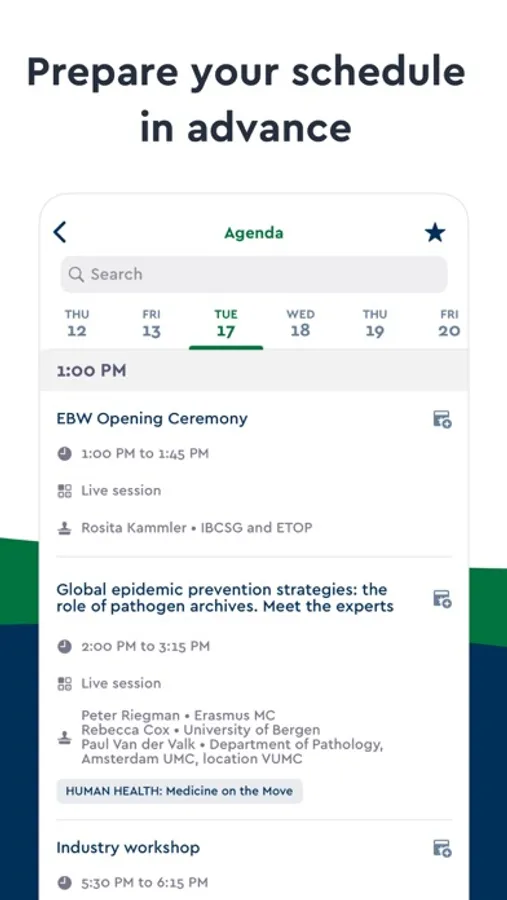 Bookmark the sessions you want to attend and organize your conference schedule to your liking. Keep your personalized EBW2020 Virtual Conference agenda handy in one place.