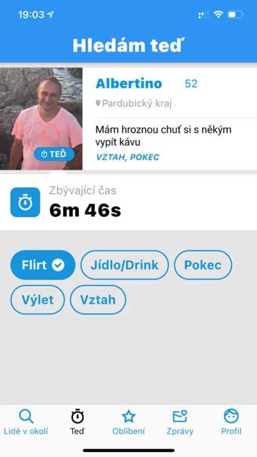 Díky tlačítku Teď tvůj profil přeskočí všechny ostatní a bude se zobrazovat na předních pozicích.
