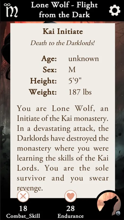You are the sole survivor of a devastating attack on the monastery where you were learning the skills of the Kai Lords. You swear vengeance on the Darklords for the massacre of the Kai warriors, and with a sudden flash of insight, you know what you must do. You must set off on a perilous journey to the capital city to warn the King of the terrible threat that faces his people.