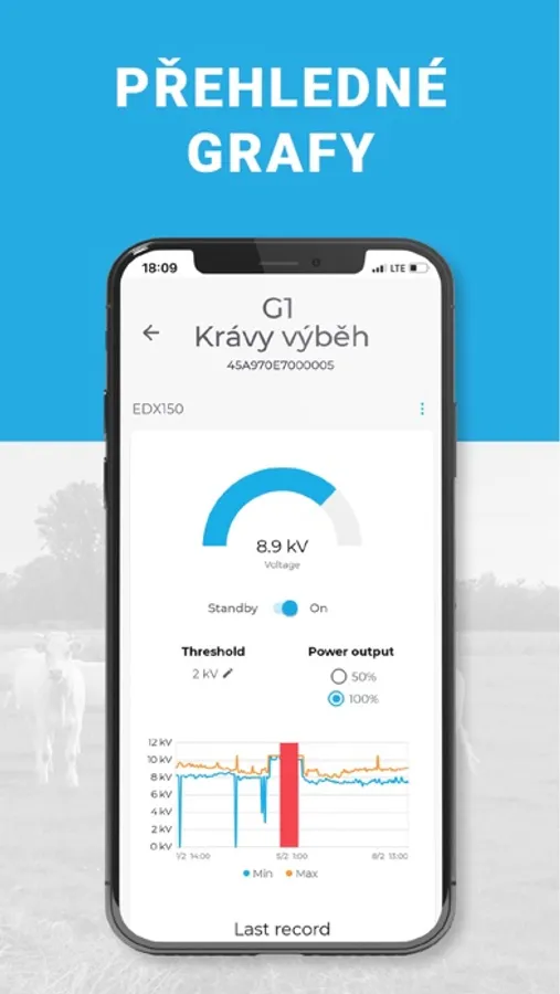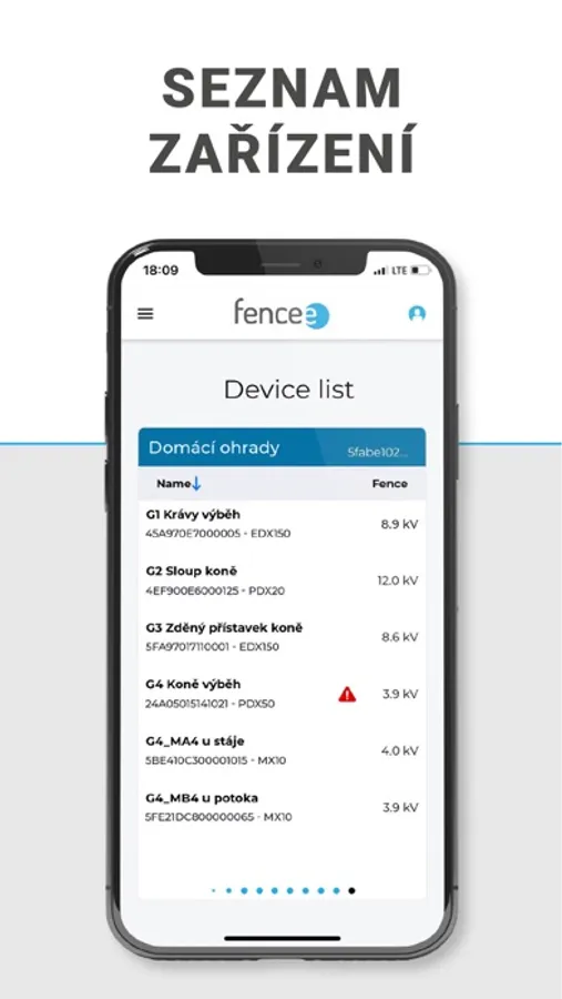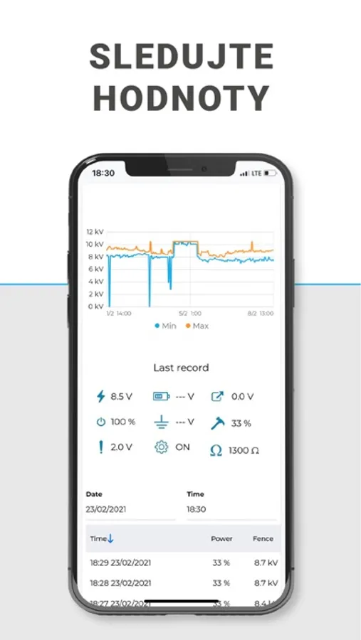 Aplikace přijímá z monitoru informace o stavu napětí ohrady.