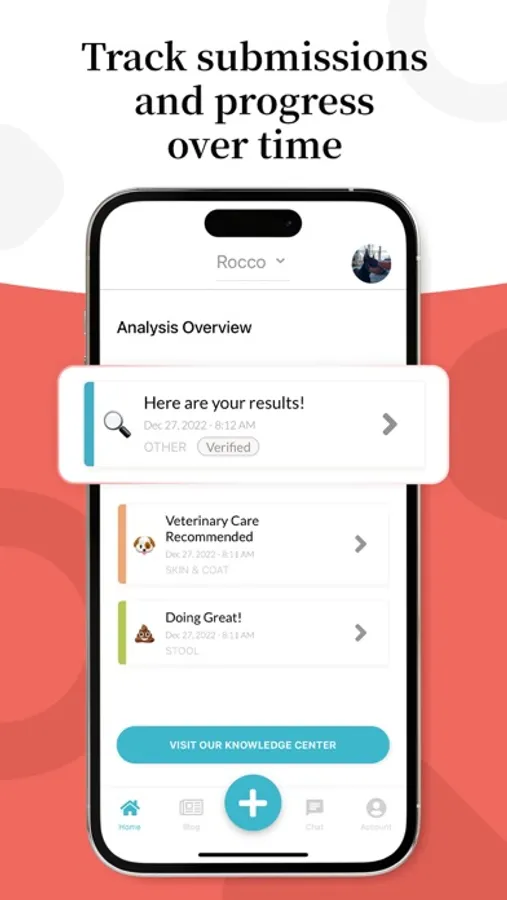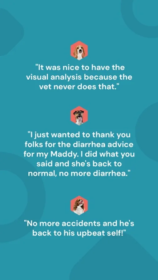 Give your dog a voice between vet visits! Perform a FREE 10-second health check to analyze a photo of your dog’s stool, skin, and more, with or without photos.