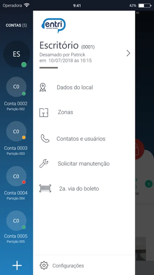 Por meio do aplicativo Entri online, é possível saber o status do painel de alarme, armá-lo e desarmá-lo, visualizar as câmeras ao vivo, verificar eventos e ordens de serviço abertas, além de realizar chamadas telefônicas para contatos cadastrados no seu perfil. Segurança e facilidade em suas mãos.