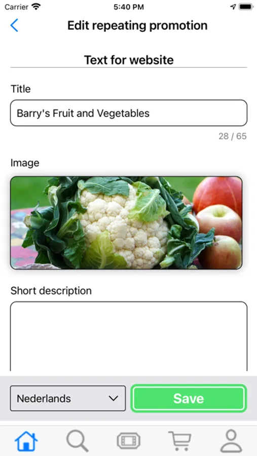 BuyFresh is specialized in helping fresh food retailers to develop their own online identity and sales channel. A special platform has been developed for this where these companies can set up their own account. The BuyFresh app has been specially developed to make the maintenance of this account considerably easier. For example, new products can be added, promotions can be introduced and communication with customers takes place via chat functions from the app. After starting the app, your own account code can be entered, after which management can start.