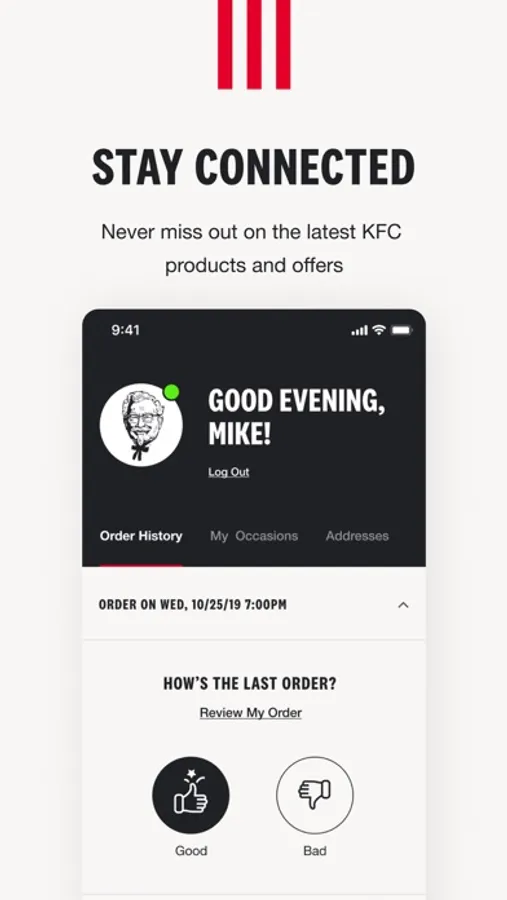 Ordering world famous fried chicken has never been easier. Skip the lines and access exclusive deals with the new KFC app.