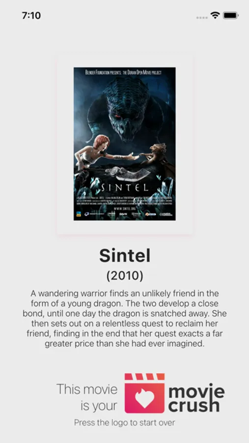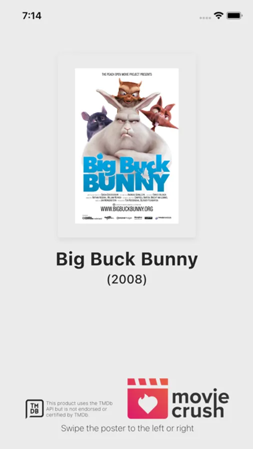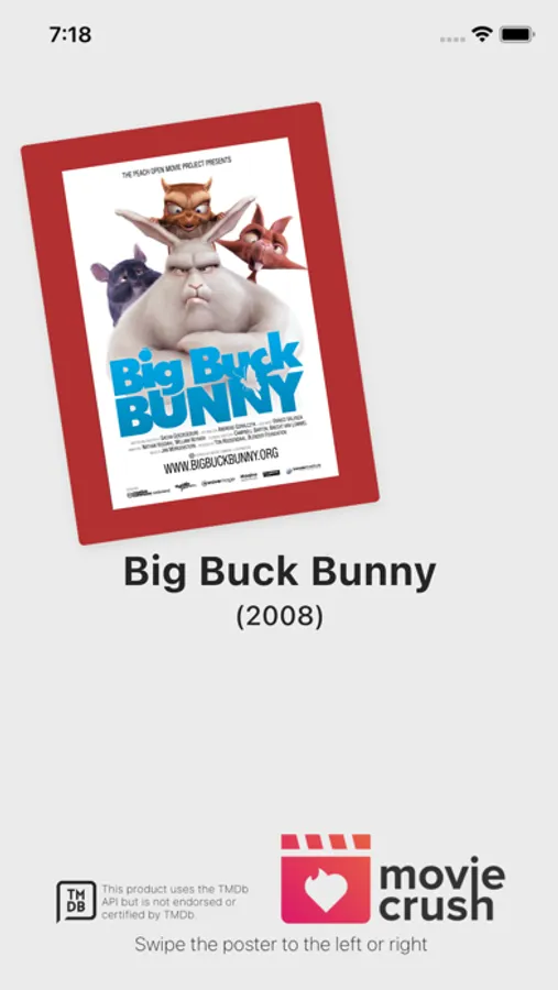Choose your favorite movies from this selection by swiping their posters left or right and Movie Crush will tell you which movie is right for you.