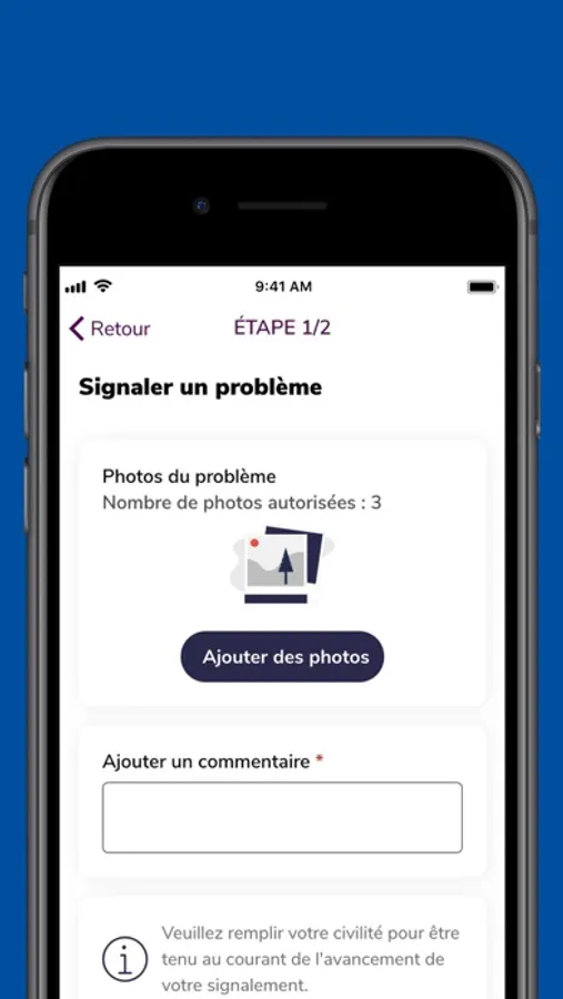 Pour des raisons de confidentialité et de respect des données personnelles, les photos jointes aux signalements ne doivent en aucun cas faire apparaitre de personne identifiable. Si tel était le cas, celles-ci feront l’objet d’une suppression.